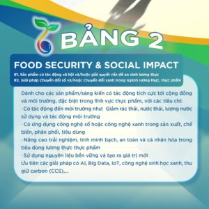 Tìm kiếm sản phẩm nhằm đảm bảo An ninh lương thực & Tác động xã hội/Ứng dụng Chuyển đổi số hoặc Chuyển đổi xanh.